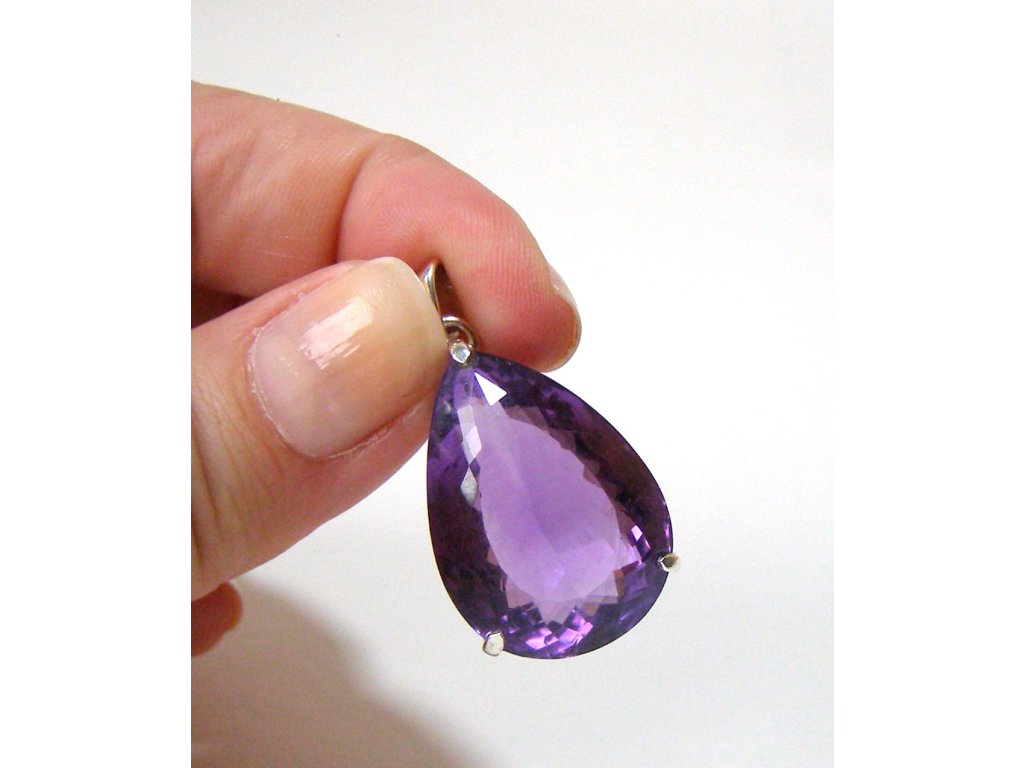 Ametyst - stříbrný přívěsek brus kapka 2