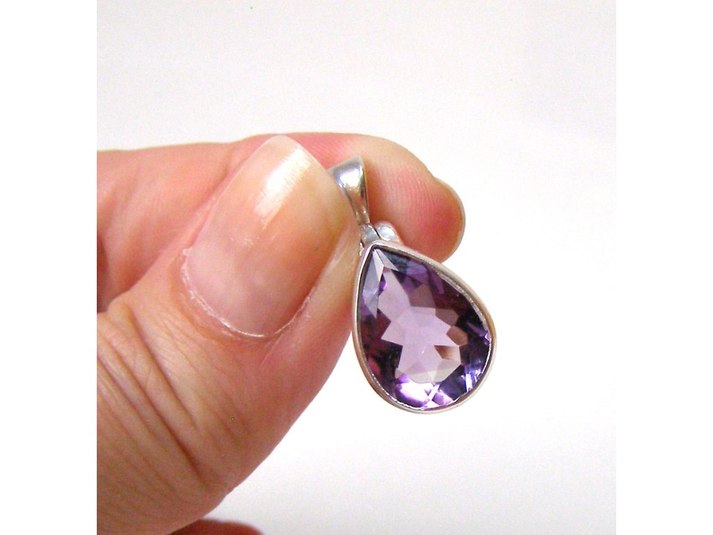 Ametyst - stříbrný přívěsek brus kapka