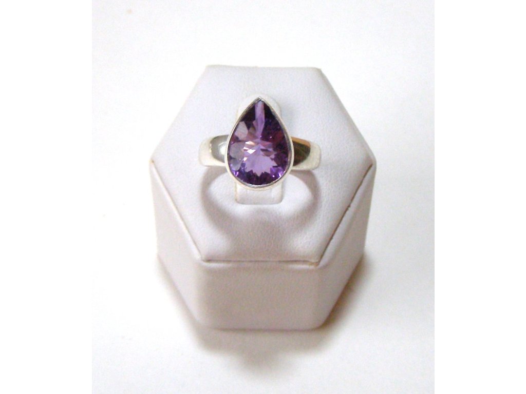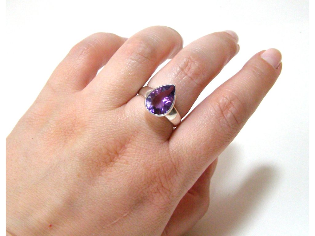 Ametyst - stříbrný prsten brus kapka 1 vel. 59
