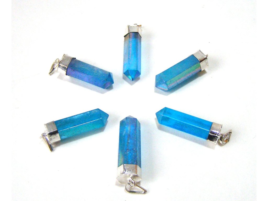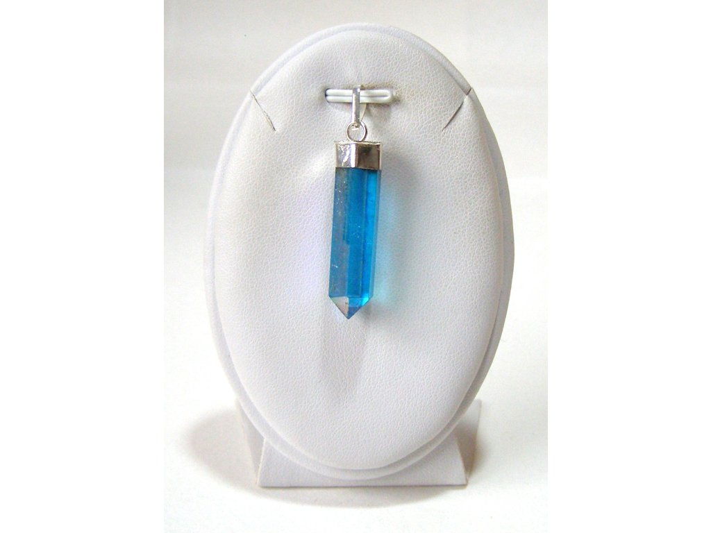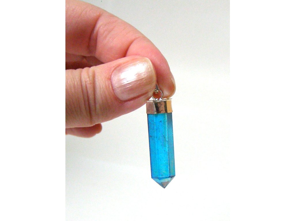 Přívěsek/kyvadlo z modré aqua aury s bižuterním úchytem. Jedná se přírodní kámen, zabarvení jednotlivých kusů se může lehce lišit.
