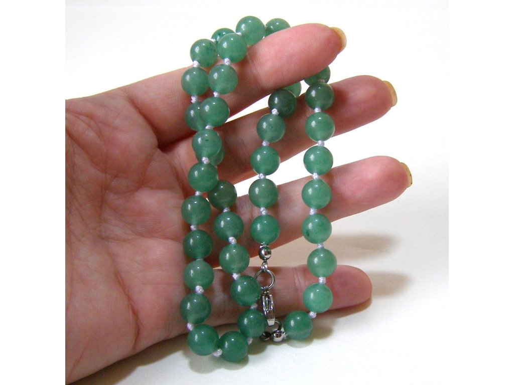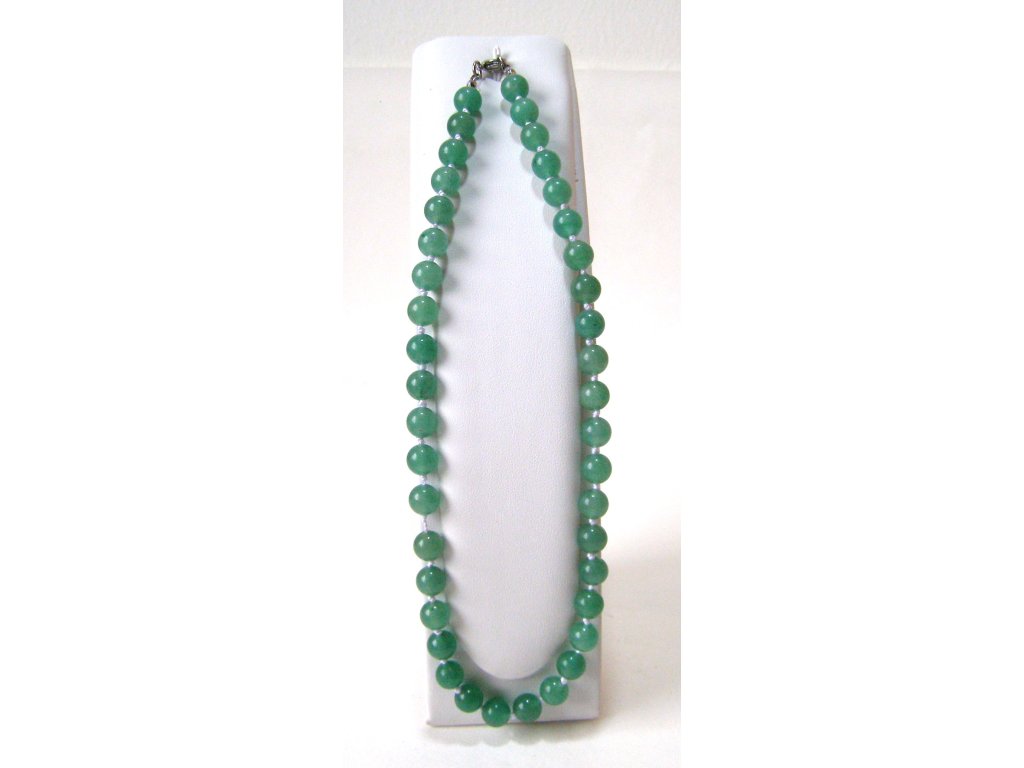 Náhrdelník z hladkých kuliček zeleného avanturinu se zapínáním z chromovaného obecného kovu. Pouze jeden kus, kupujete přesně ten, který je na fotce.