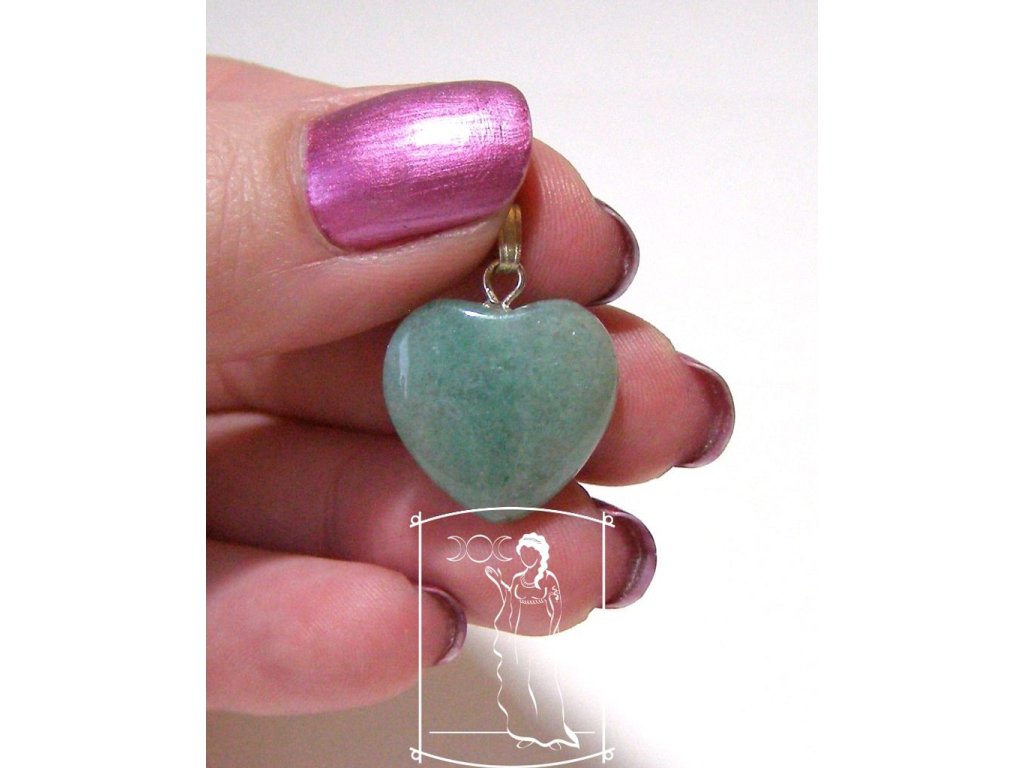 Přívěsek ze zeleného avanturinu ve tvaru srdce s bižuterním úchytem. Jedná se o přírodní materiál, zabarvení jednotlivých kusů se může lehce lišit.