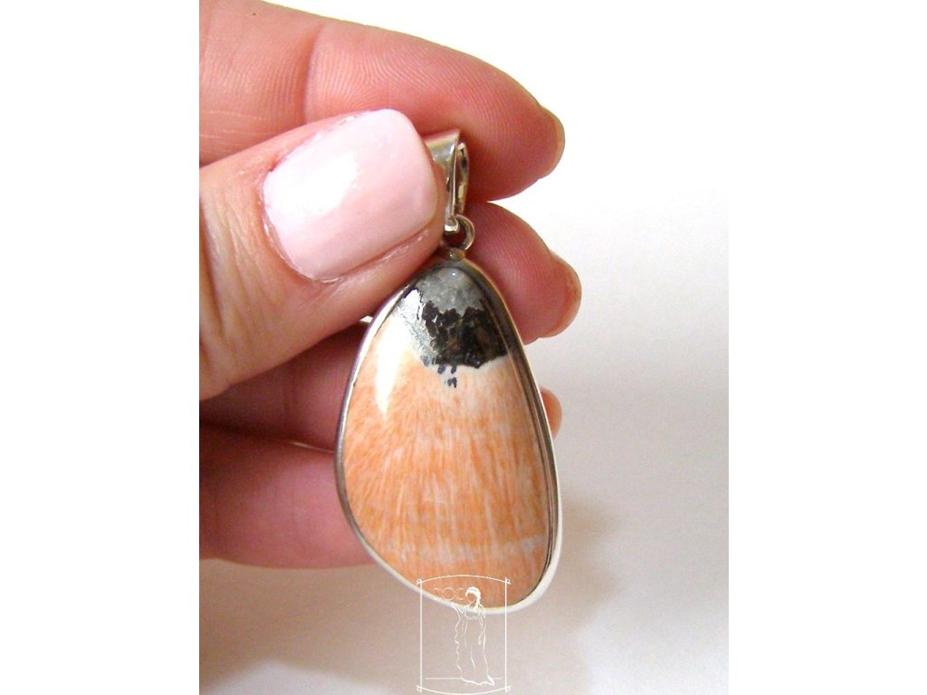 Celestobaryt prvotřídní kvality, který je zasazen ve stříbře (Ag 925/1000). Pouze jeden kus, kupujete přesně ten, který je na fotce.
