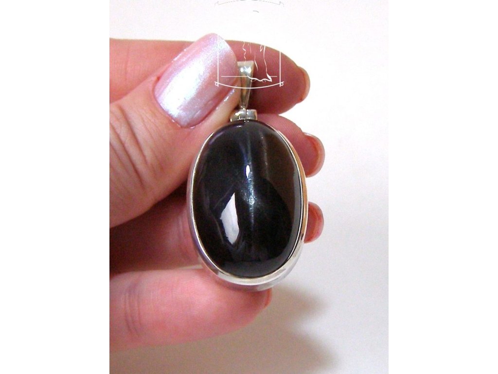 Přírodní černá hvězda pochází z Indie a je zasazena do stříbra Ag 925/1000.