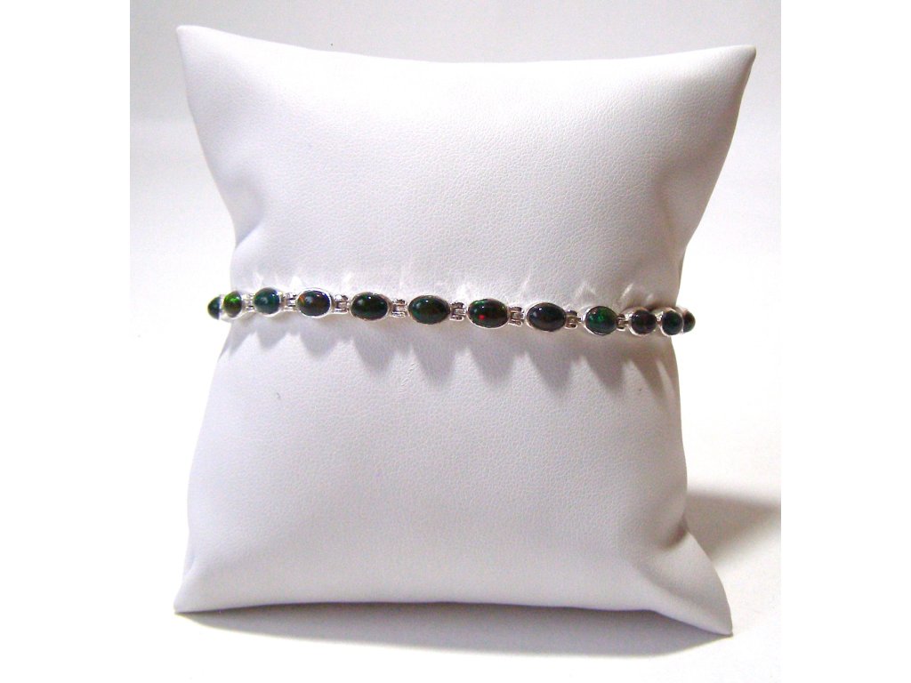 Černý etiopský opál – stříbrný náramek Noční jiskra