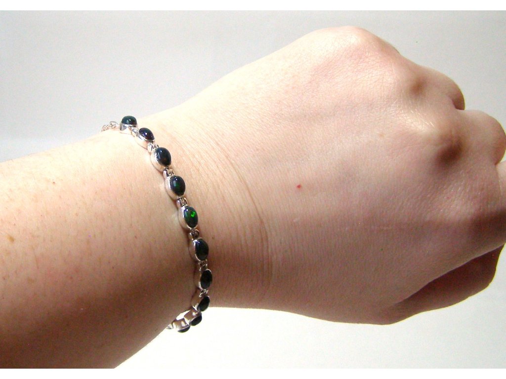 Černý etiopský opál je zasazen do stříbra Ag 925/1000. Kupujete přesně ten náramek, který vidíte na fotografii.