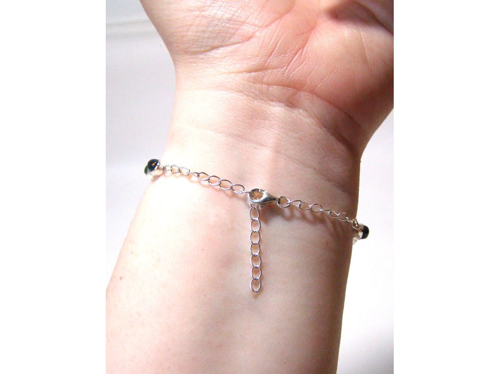 Černý etiopský opál patří mezi opály s tmavým podkladem, na kterém vynikne barevný flash. U tohoto náramku se hra barev ukazuje v drobných, živých záblescích – nenápadně, a právě proto tak krásně.