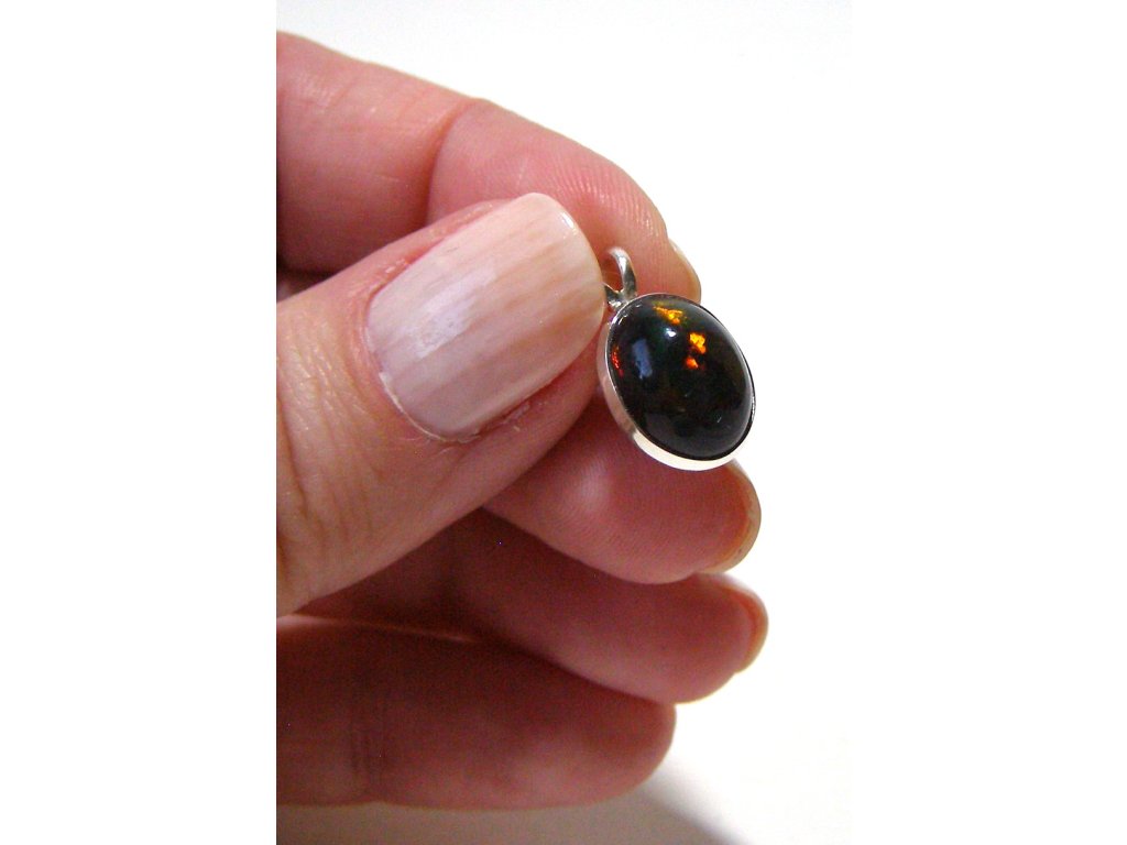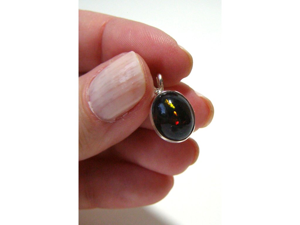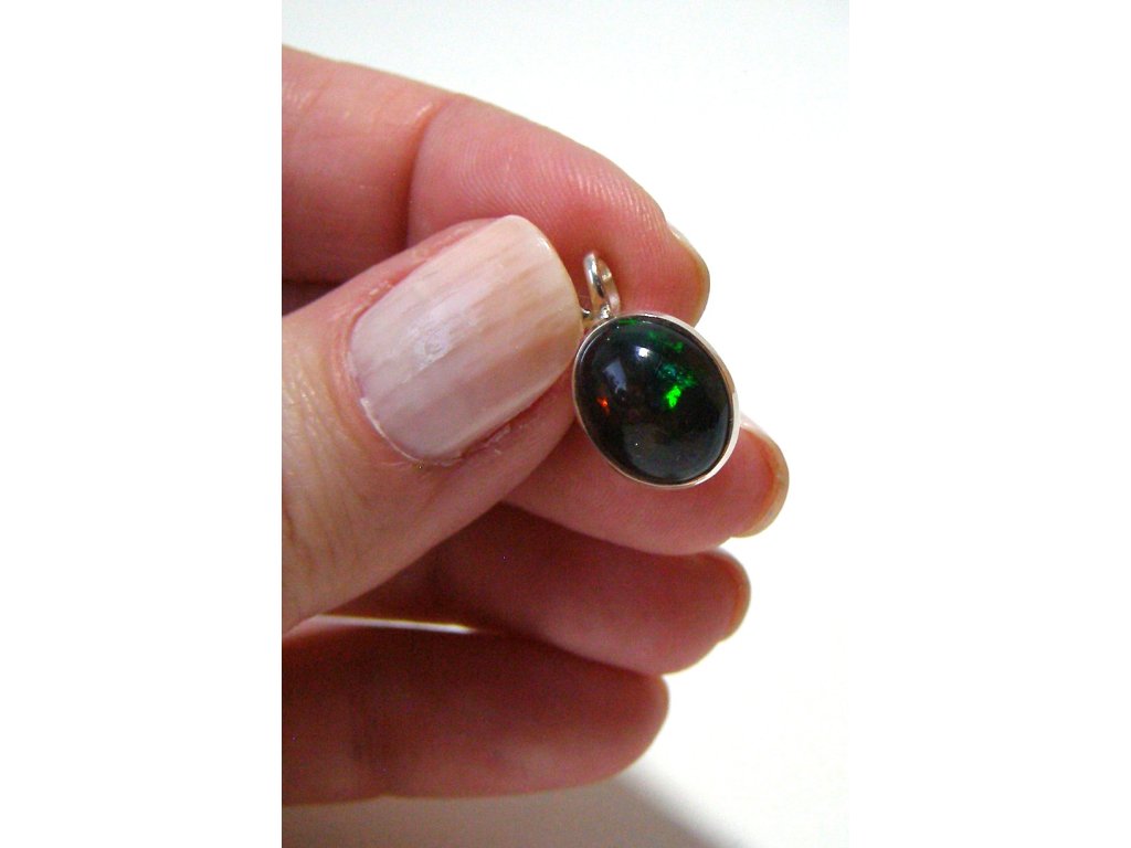 Černý etiopský opál – stříbrný přívěsek Magie světla