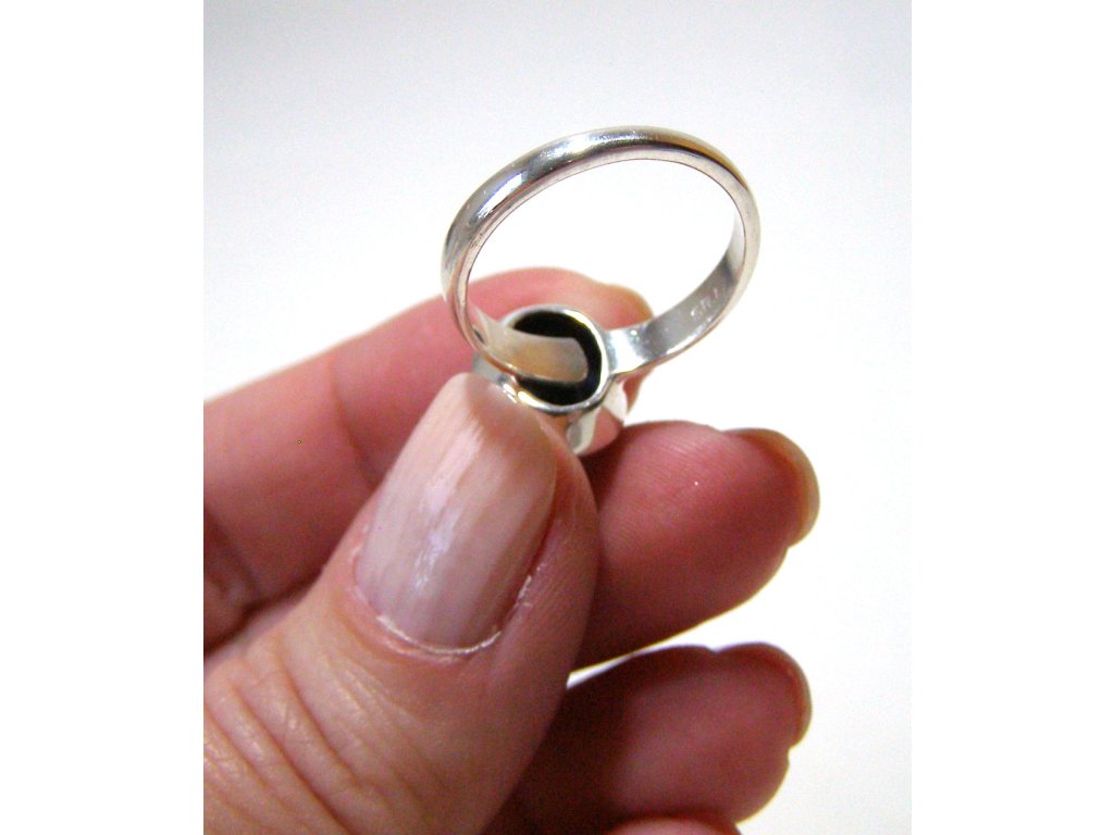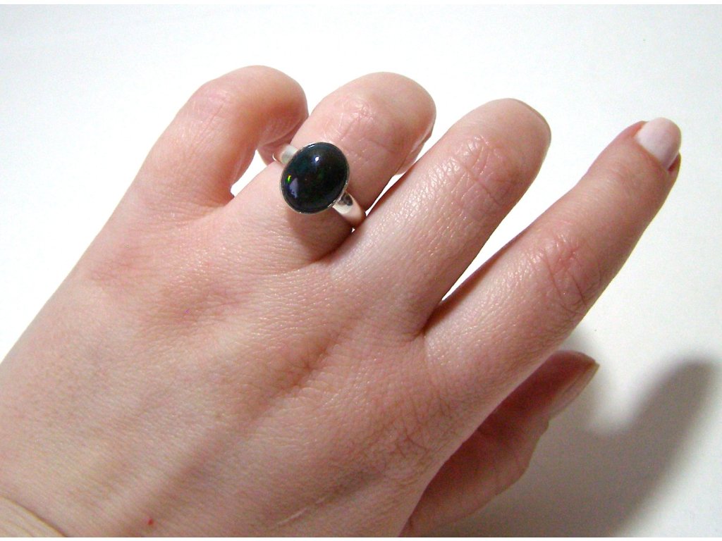 Černý etiopský opál je zasazen do stříbra Ag 925/1000. Pouze jeden kus – kupujete přesně ten prsten, který vidíte na fotografii.