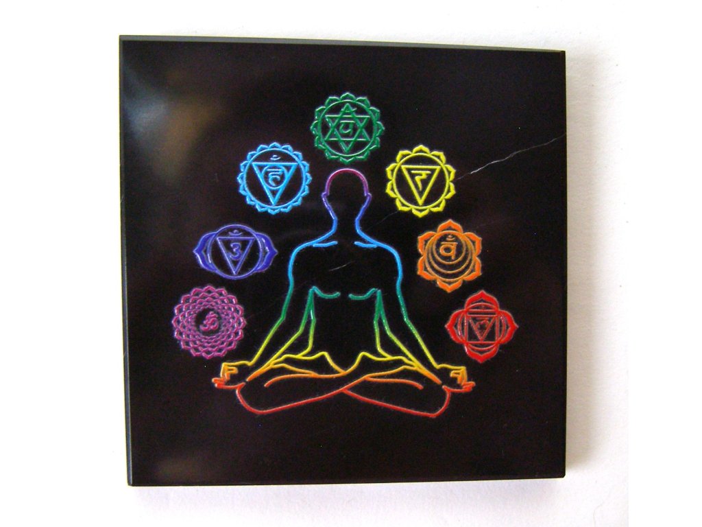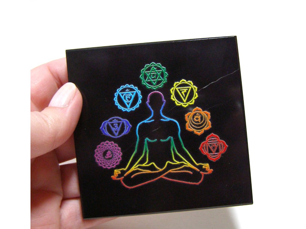 Leštěná destička z černého obsidiánu s barevným mystickým symbolem. Jedná se o přírodní kámen a ruční práci, jednotlivé kusy se mohou lehce lišit.