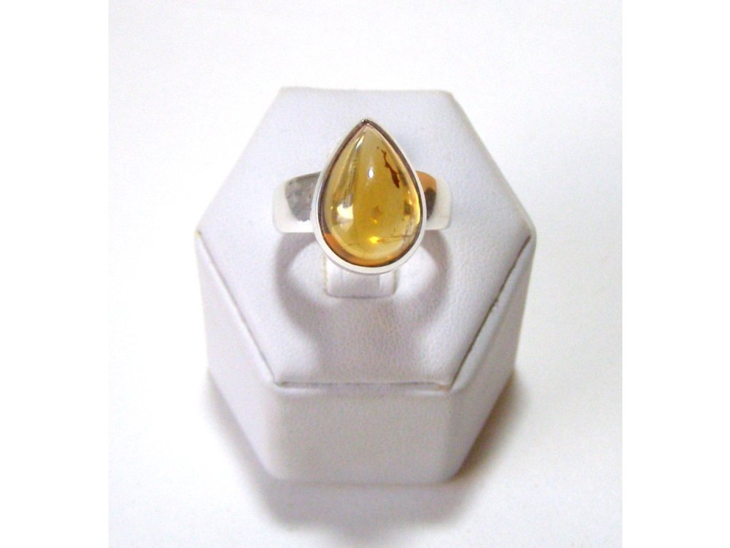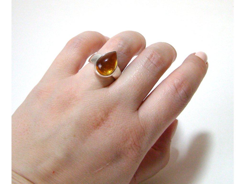 Citrín - stříbrný prsten kapka vel. 57