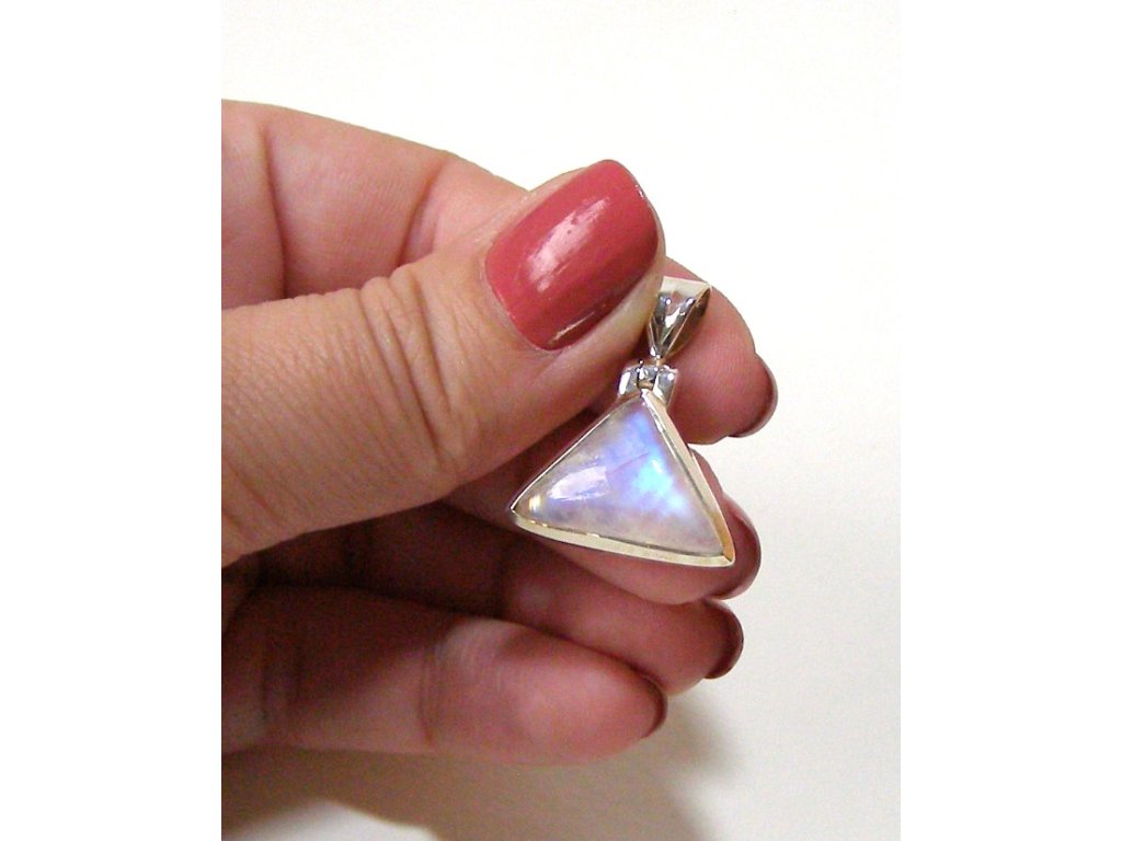 Duhový měsíční kámen - stříbrný přívěsek trojúhelník
