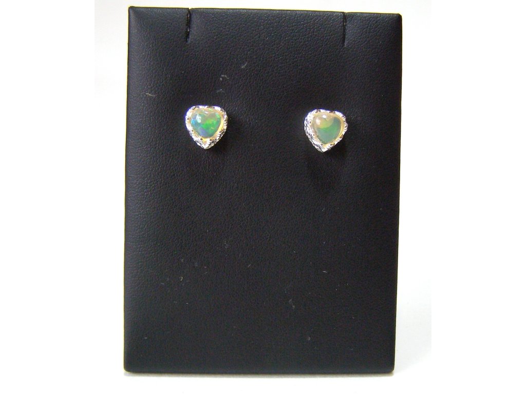 Drahý etiopský opál - Stříbrné náušnice Šepot duhového srdce