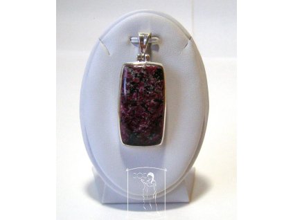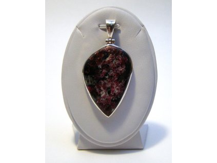 Krásný, elegantní přívěsek s eudialytem, zasazen ve stříbře.