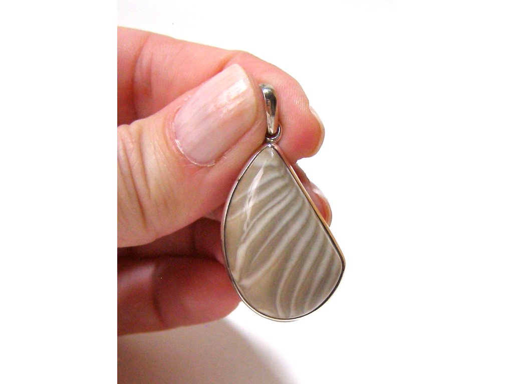 Flint stone v tomto přívěsku má klidnou béžovo-krémovou barevnost a výrazné linie, které působí jako vlny v písku. Je to jemný, ale nepřehlédnutelný kámen – ve stříbře vynikne jeho přirozená kresba i čistota celku. Proudy času působí lehce a přirozeně, hodí se pro každodenní nošení i jako talisman do období, kdy potřebujete víc vnitřního prostoru.