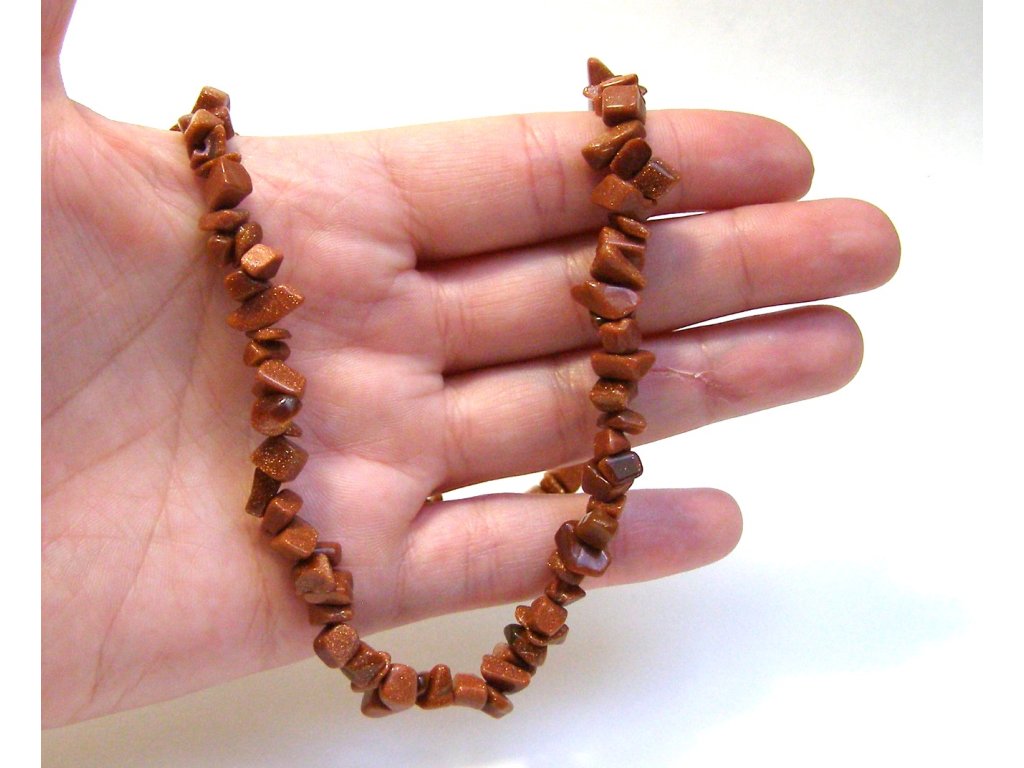 Náhrdelník z hnědého goldstonu s bižuterním zapínáním. Pouze jeden kus, kupujete přesně ten, který je na fotce.