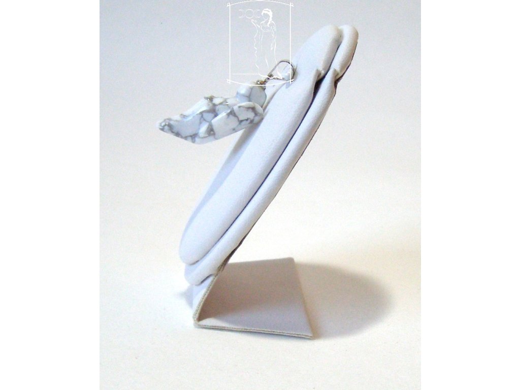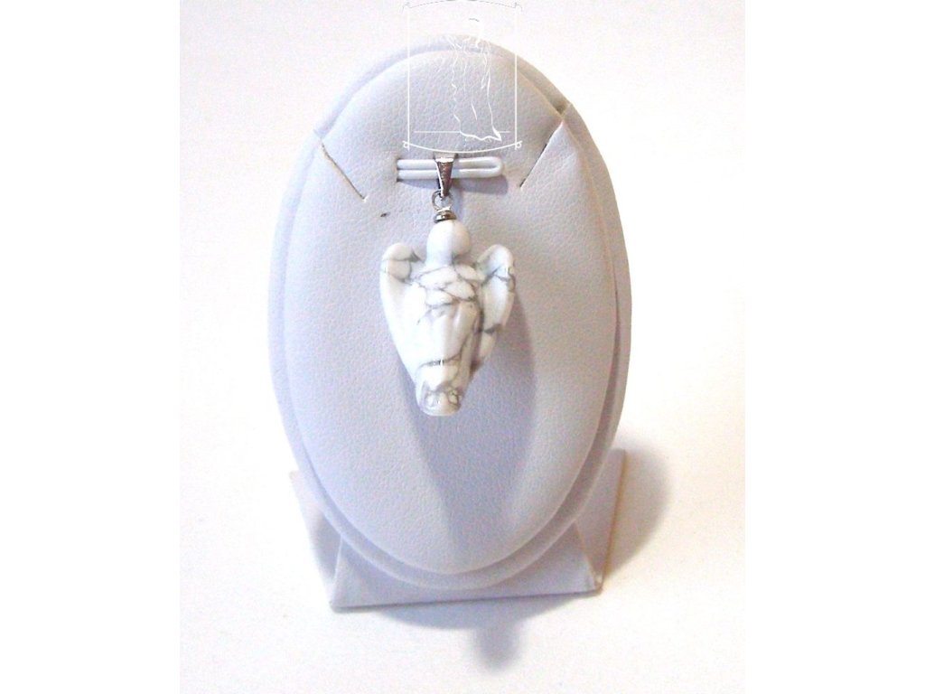 Přívěsek z howlitu ve tvaru anděla s bižuterním úchytem. Jedná se přírodní kámen, zabarvení jednotlivých kusů se může lehce lišit.
