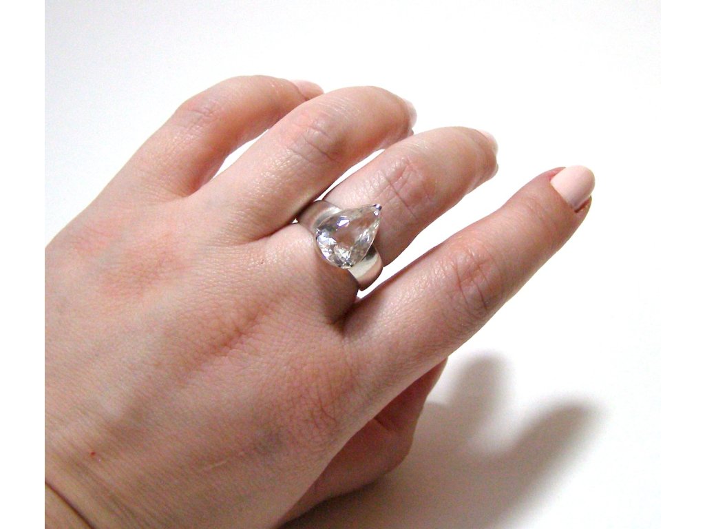 Křišťál - stříbrný prsten brus kapka 1 vel. 57