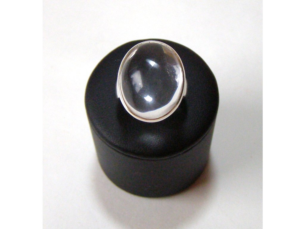 Prsten s hladkým kabošonem čirého křišťálu, zasazeným ve stříbře Ag 925/1000.