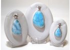 Larimar je nádherný modrý až modrozelený kámen s bílými místy, který se nachází na jediném místě na světě, na ostrově Hispaniola, který patří Dominikánské Republice. Právě tam je nejvíce spojován s delfíny a proto se mu také říká kámen delfínů. Je známý i pod názvem Kámen bájné Atlantidy. Larimar používali k výrobě šperků už domorodí indiáni z kmene Taino, pak byl ale zase na mnoho let zapomenut. Znovu objeven byl roku 1916, kdy jej našel geolog Miguel Mendez a pojmenoval jej po své dceři Larisse a přidal k názvu slovo mar, které znamená moře. Larimar podporuje vytváření klidné atmosféry doma i v práci, pomáhá odbourávat stres a podporuje úspěšné obchody. Dokáže zvyšovat a zesilovat intuici, pomáhá komunikovat s anděly, je skvělým pomocníkem při práci s energiemi a při napojování se na Akášu. Svému majiteli slouží jako průvodce duše po pravé cestě životem. Pomáhá odstranit vsugerovaná omezení a bloky. Posiluje samoléčebný proces, ulevuje od bolesti. Prospívá oblasti krku a hlavy. Je přiřazen znamení Ryb a krční čakře. Velmi mu svědčí voda a proto jej čistíme pod proudem vody a nabíjíme v misce s vodou při úplňkové noci.