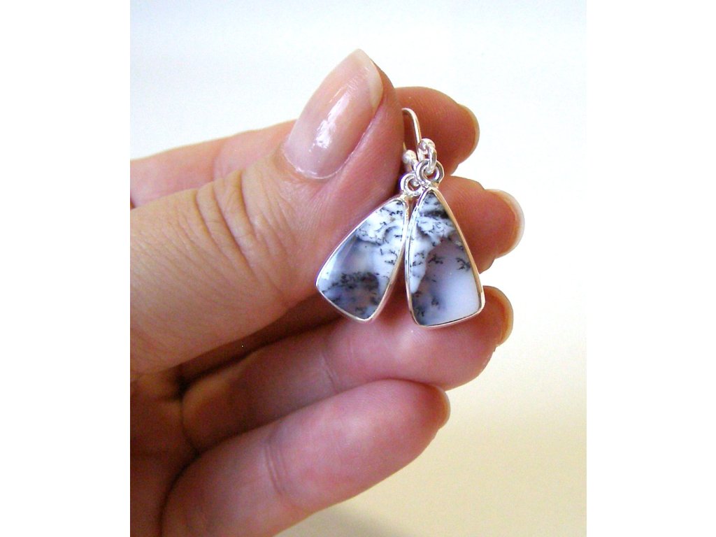 Merlinit - stříbrné náušnice trojúhelníky