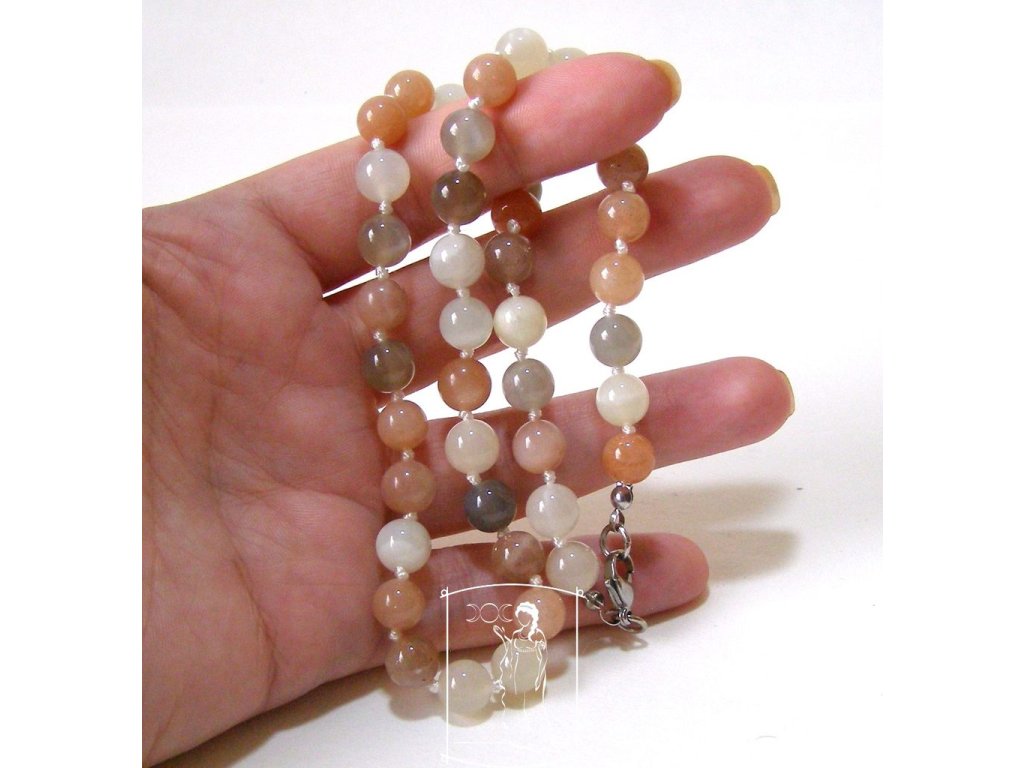 Měsíční kámen je kamenem intuice, rovnováhy a vnitřního souladu. V tomto náhrdelníku se jemně prolínají krémové, broskvové i decentně šedivé odstíny, které společně vytvářejí klidný, harmonický celek s typickým měsíčním leskem.