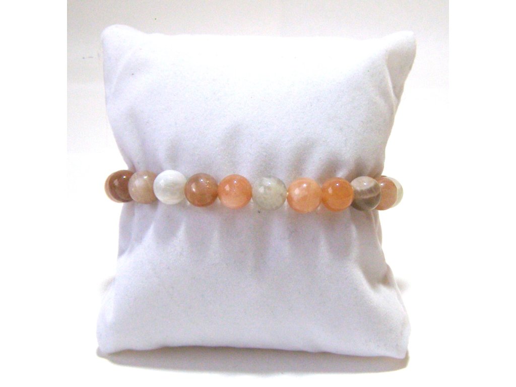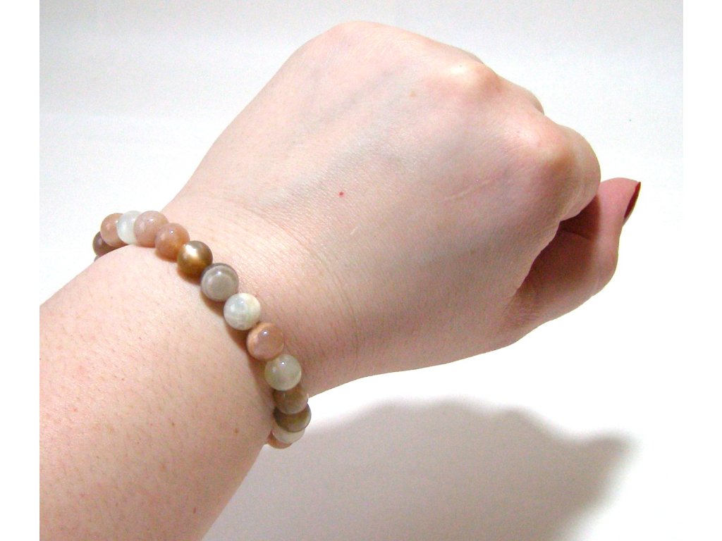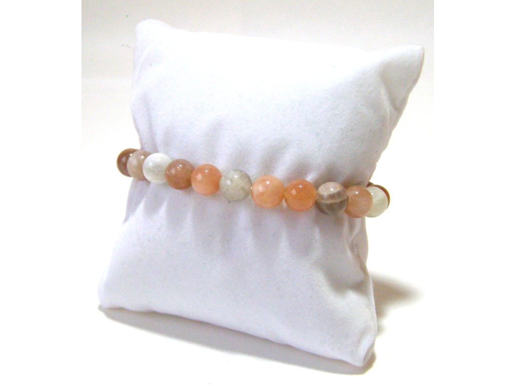 Měsíční kámen je kamenem intuice, rovnováhy a vnitřního souladu. V tomto náramku se přirozeně prolínají krémové, broskvové a jemně šedé odstíny, které společně vytvářejí klidný, harmonický celek s typickým měsíčním leskem.