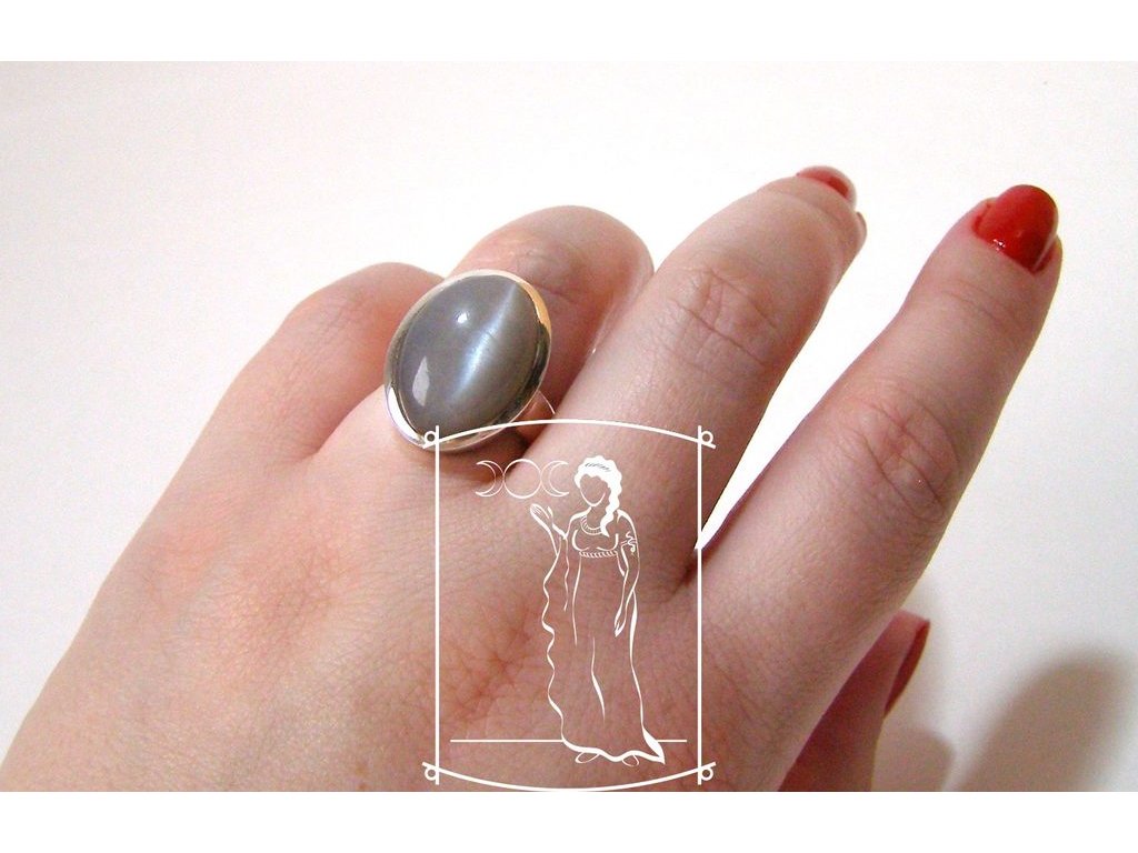 Měsíční kámen - stříbrný prsten ovál šedivý vel. 54 (P2230)