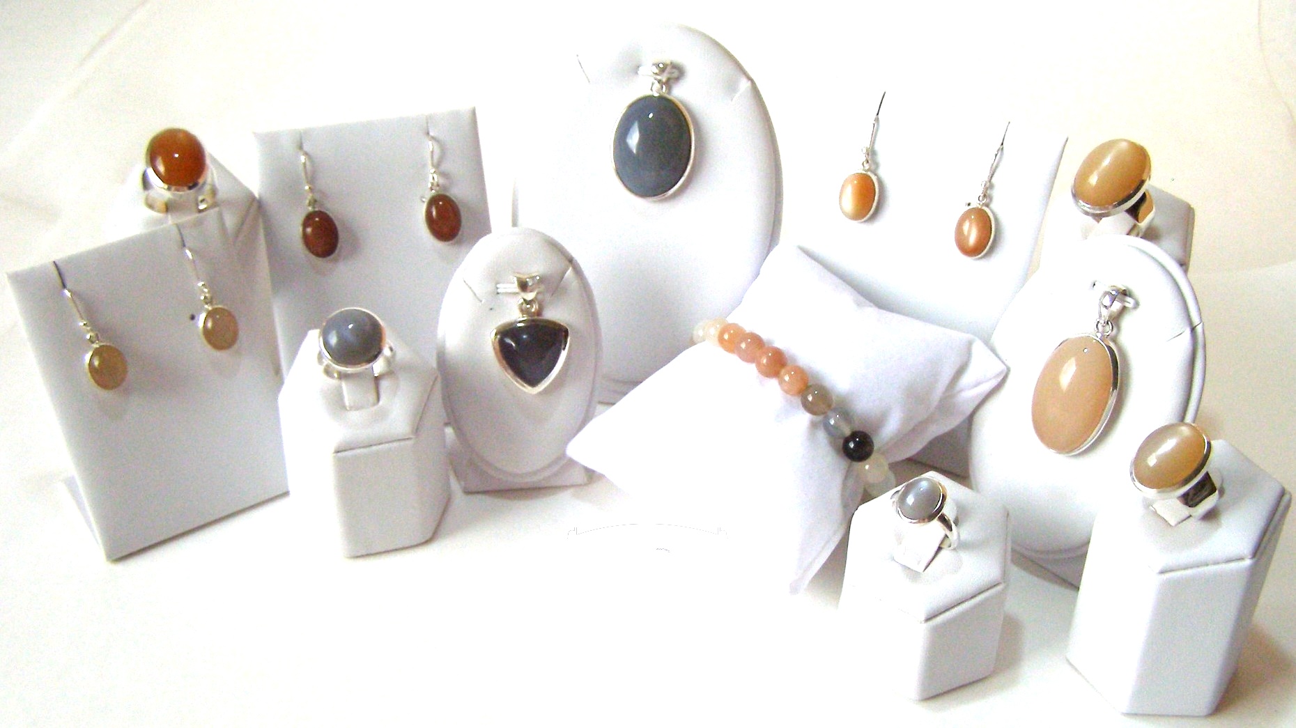 Stříbrné šperky s měsíčním kamenem nesou jemné, proměnlivé světlo, které připomíná svit měsíce odrážející se na klidné hladině vody. Měsíční kámen (adulár) se objevuje v odstínech bílé, krémové, broskvové, růžové i šedé, často s typickým vnitřním leskem, který se mění podle dopadu světla.