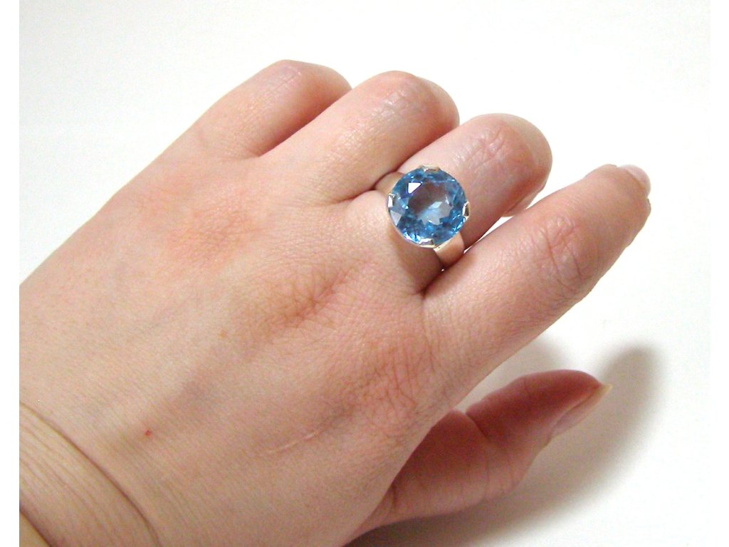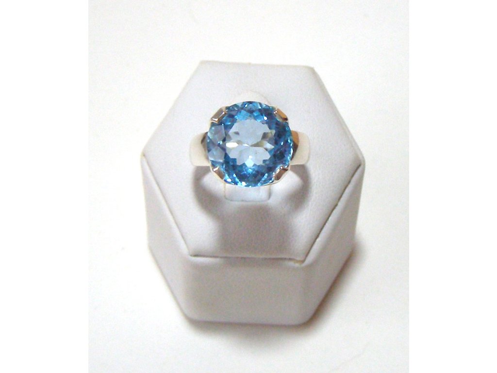 Modrý topaz - stříbrný prsten brus kulatý vel. 59