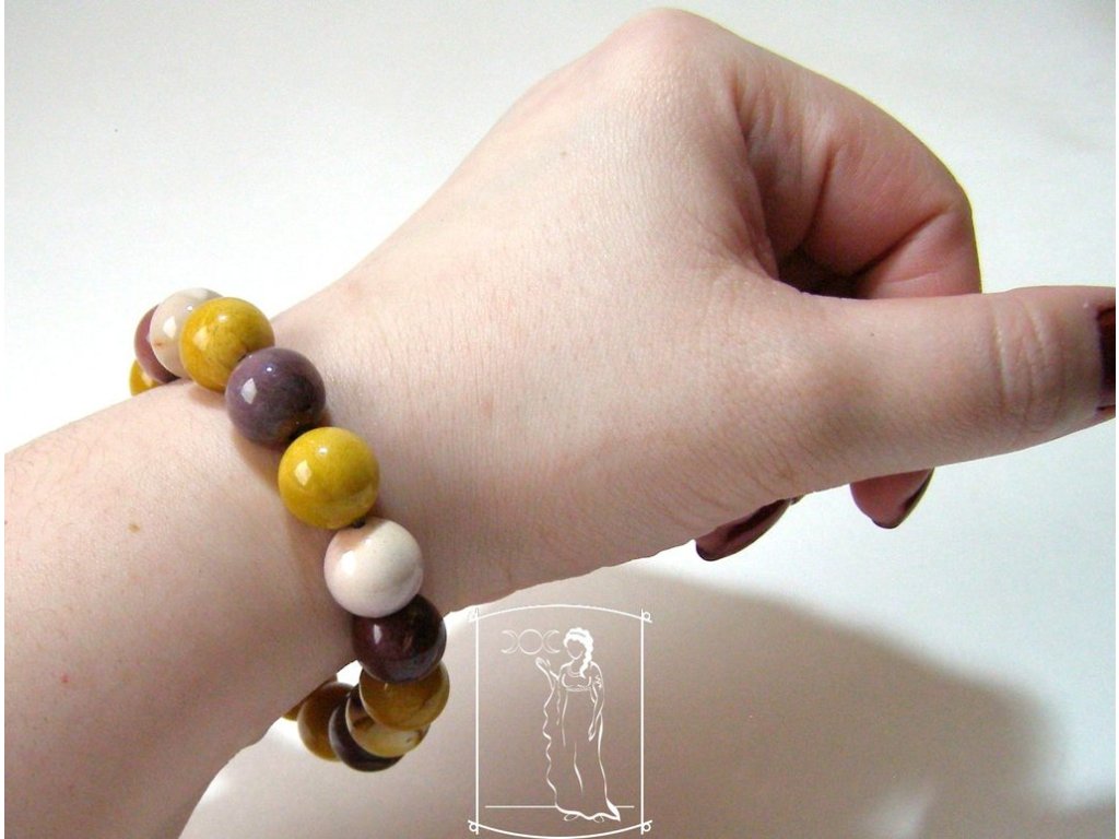 Náramek je tvořen kvalitními hladkými kuličkami mookaitu navlečenými na gumičce.