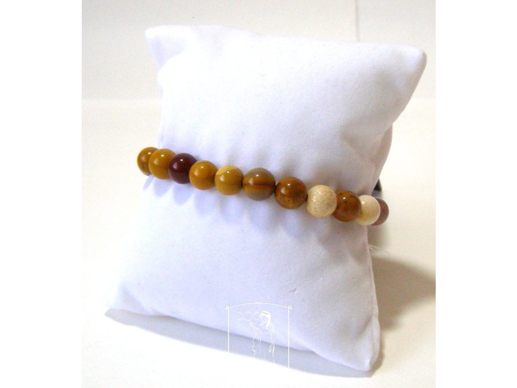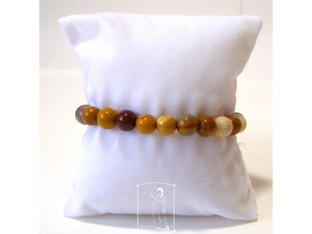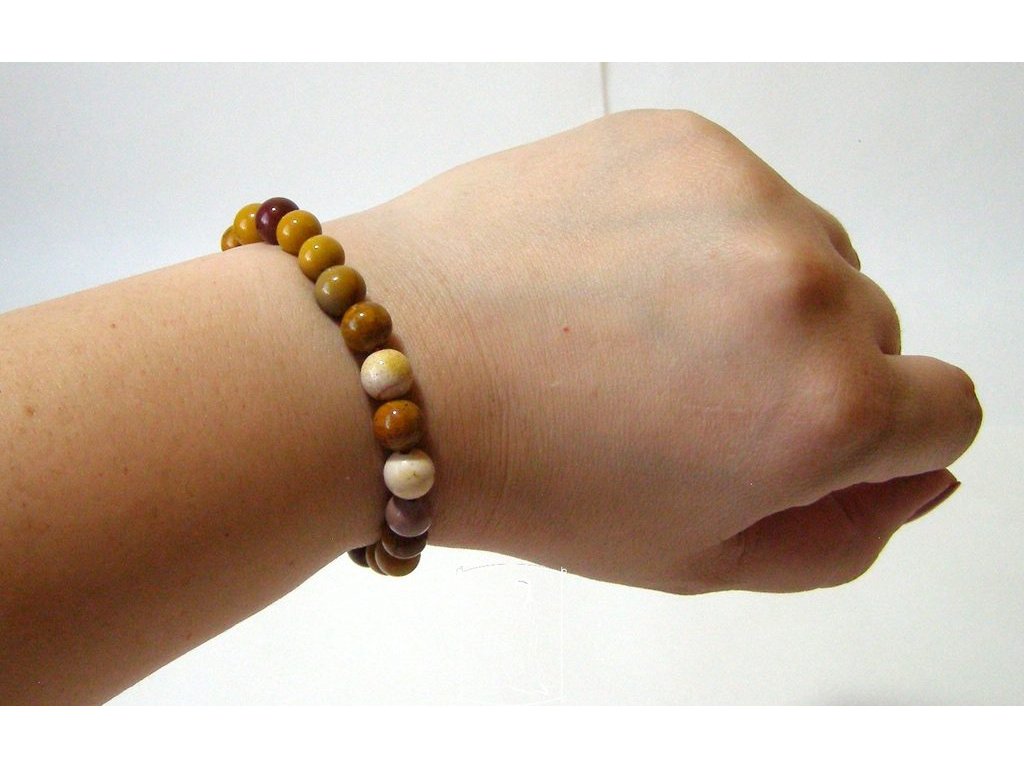 Náramek je vytvořen z hladkých přírodních kuliček mookaitu, navlečených na kvalitní gumičce pro pohodlné nošení.