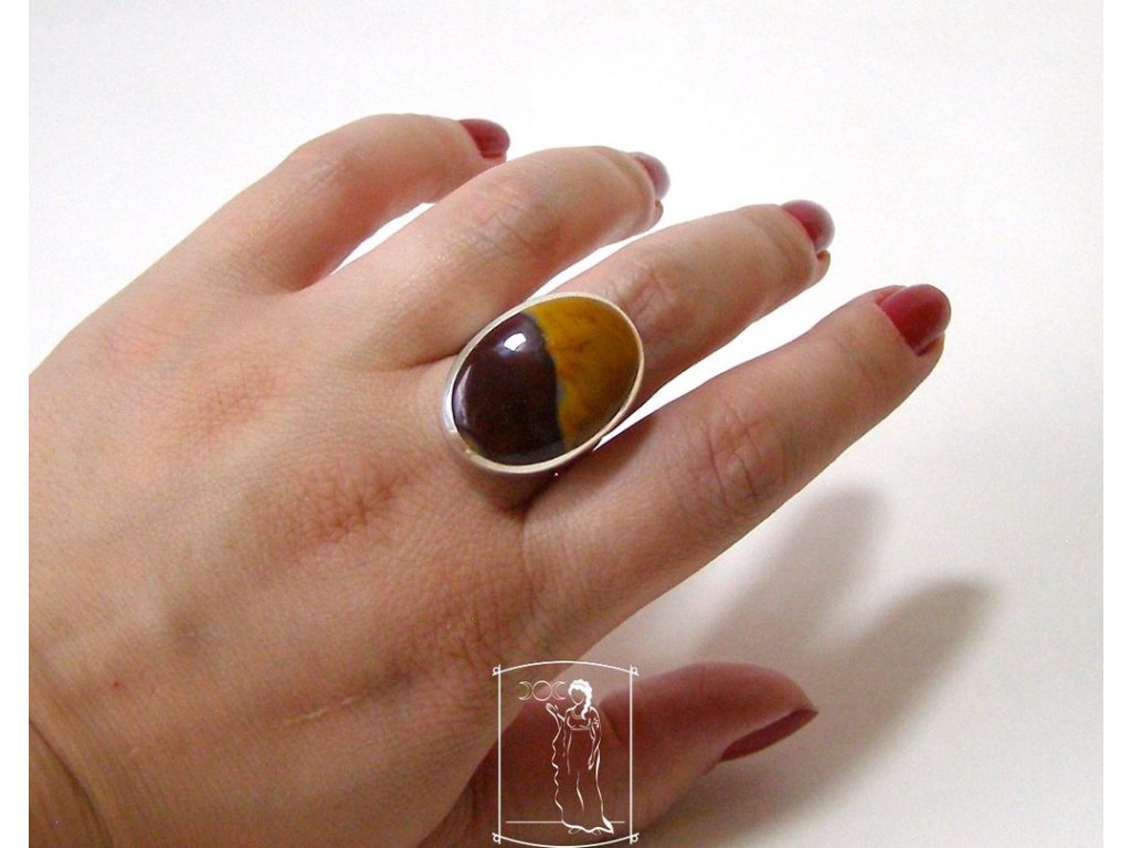 Prsten zdobí kvalitní přírodní mookait zasazený do stříbra (Ag 925/1000).