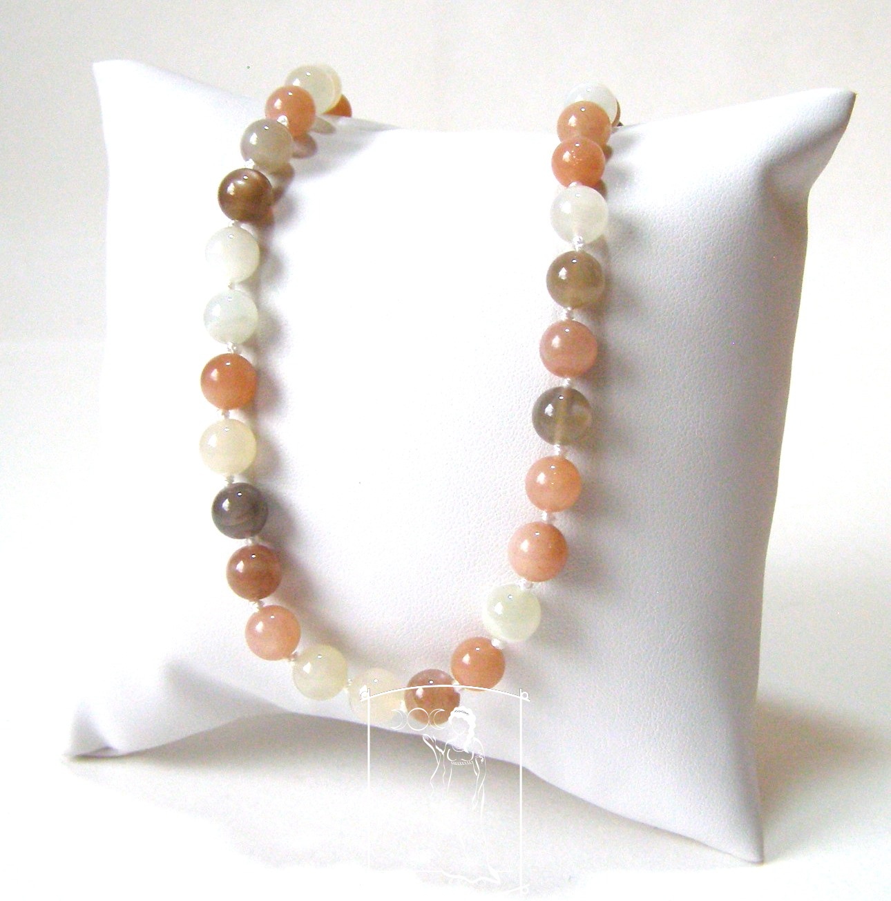 Jemný náramek z měsíčního kamene v krémových, broskvových a šedých tónech, laděný do klidné a harmonické energie.