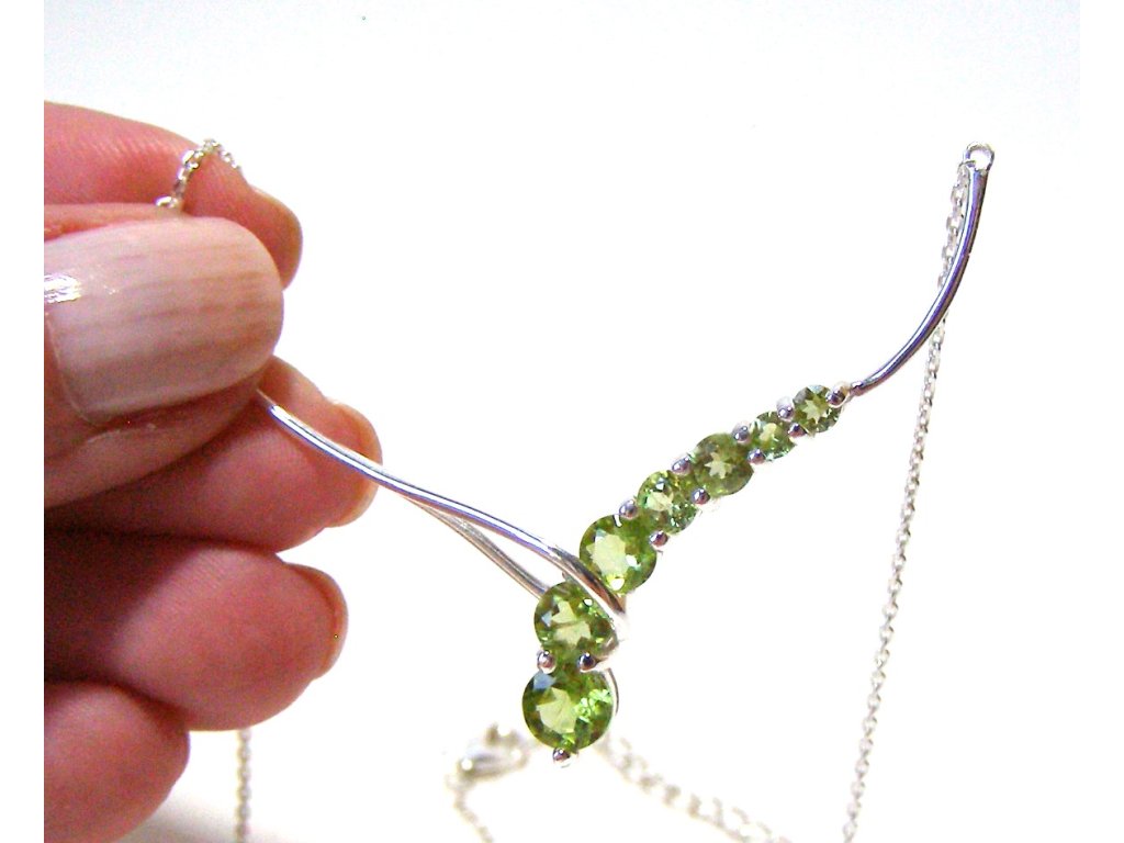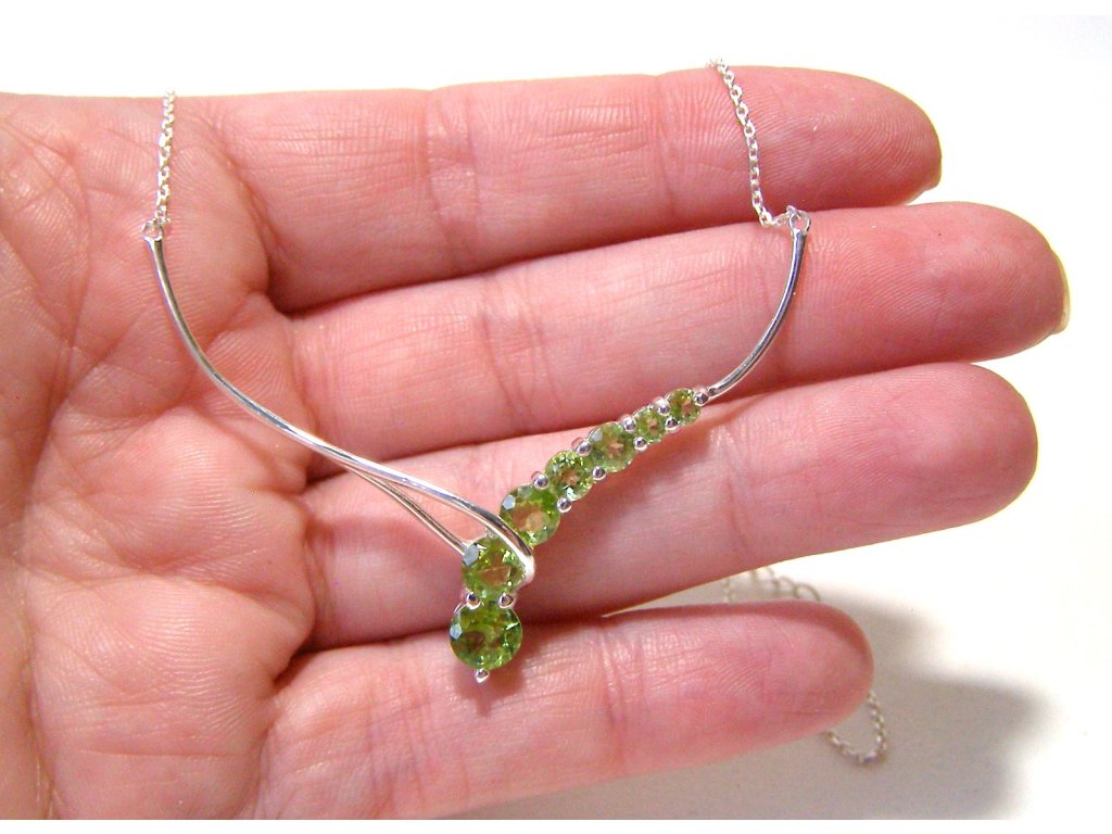 Olivín – stříbrný náhrdelník Kaskáda štěstí