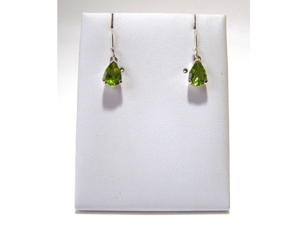 Olivín - stříbrné náušnice Kapky štěstí