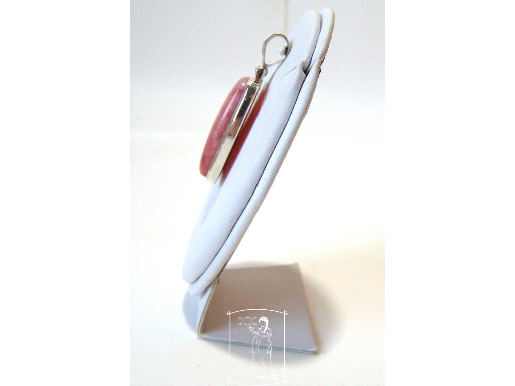 Přírodní rodochrozit je zasazen ve stříbře (Ag 925/1000).