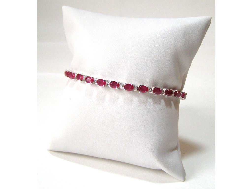 Rubín - stříbrný náramek brus oválky