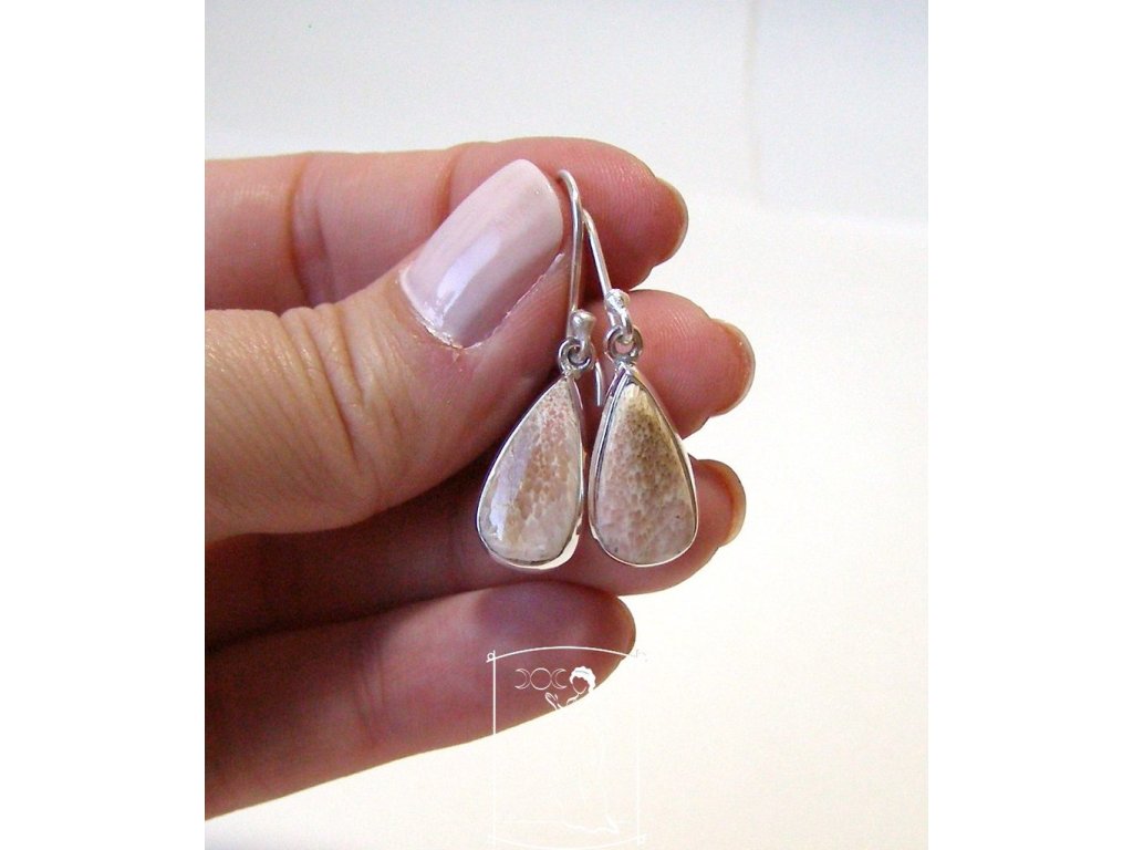 Skolecit lososový - stříbrné náušnice Něžné světlo