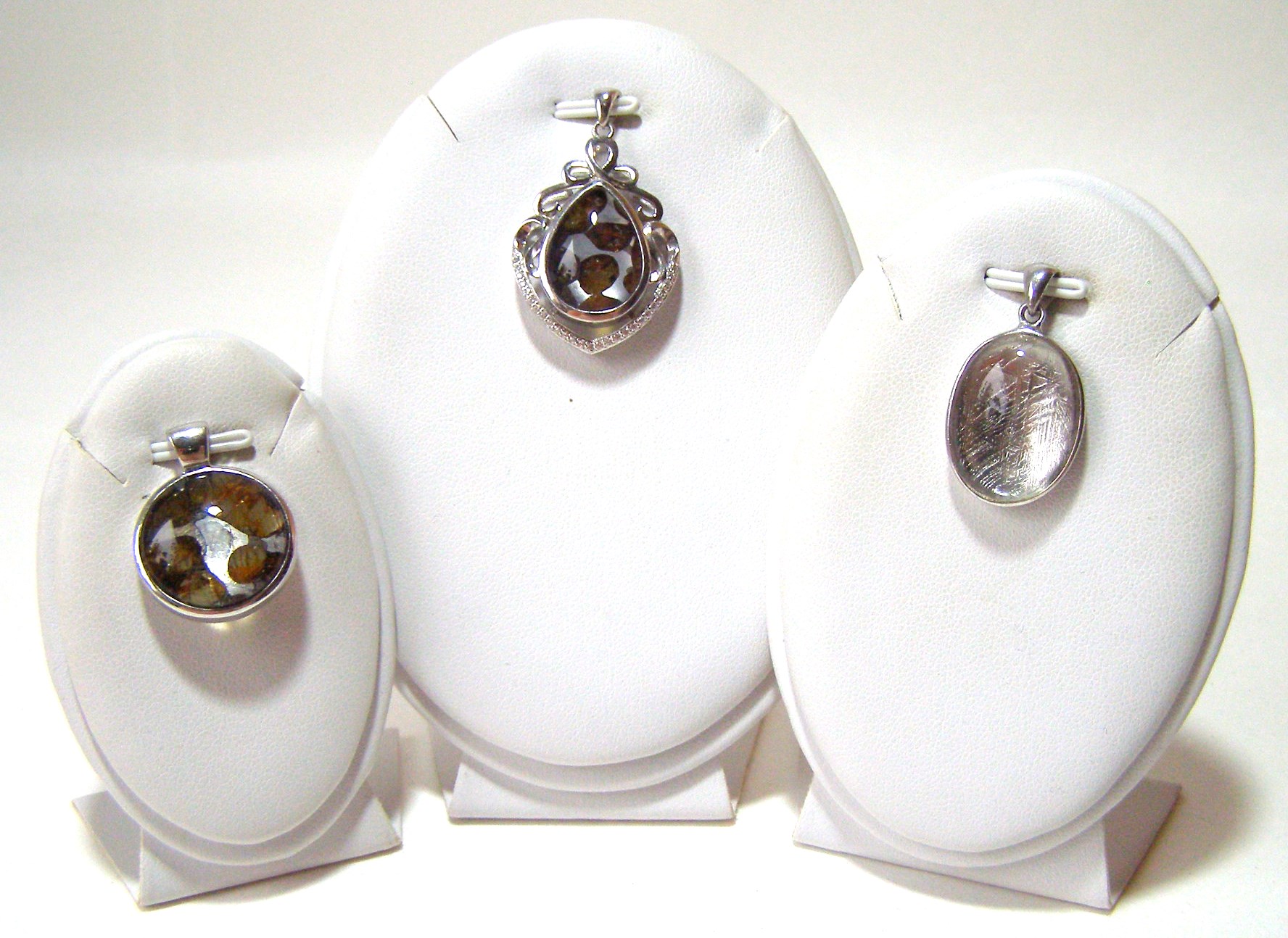 Krásný přívěsek z meteoritu Pallasitu, zasazen ve stříbře., zdobený drobnými zirkony.
