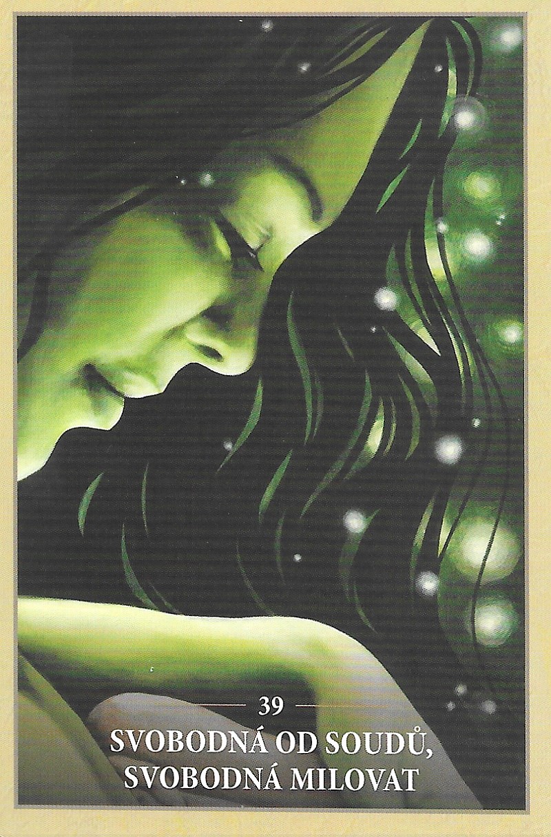 Svobodná od soudů, svobodná milovat. Možná jste člověk, který je zvyklý neustále dávat, starat se o všechny okolo, pomáhat, pečovat o dobro všeho a všech nejen ve svém okolí. Tak pro vás přichází karta s poselstvím, byste se zastavili a uvědomili si, že se musíte naučit i přijímat, nejen pro sebe, ale i pro své okolí. Protože pokud neustále rozdáváte, tak vaše okolí přijímá, ale nedává. Je potřeba nastolit rovnováhu a harmonii a proto se zastavte a přemýšlejte, zda umíte i přijímat. Nejen hmotné věci nebo dárky, ale i čas, energii a lásku. Možná si myslíte, že jste dobrý člověk, který neustále pomáhá, doslova se rozdává pro ostatní a nic za to nechce a pak se mu stane nějaká nepříjemná věc. Přijde nějaká překážka, která vás zastaví, nemoc, nehoda, finanční problém..... Ty překážky nepřicházejí jako trest, ale jako varování. Varování, že se máte zastavit a něco přehodnotit. Ne, většinou není vůbec potřeba být hodnější a dávat více, ale naopak. Být větší sobec, dát sebe na první místo a v první řadě pomoci sobě, pak až ostatním. Možná, že to je ta jediná věc, kterou jste dosud dělali špatně a tak ji máte změnit. Ty nepříjemné zkoušky v životě nejsou tresty, ale pomoc, i když to v první chvíli člověk popírá a nechce to vidět, ani si to přiznat. Naučte se přijímat, aby se vaše okolí mohlo naučit dávat.