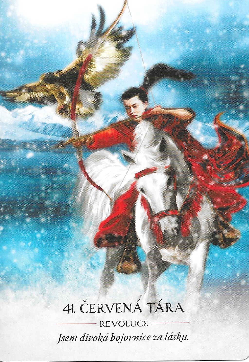 Tato karta k tobě přichází ve chvíli, kdy je čas nezapomenout na touhu svého srdce. Červená Tára pomáhá odstraňovat překážky lásce i hojnosti a připomíná, že skutečná změna nezačíná slovy, ale činy.
