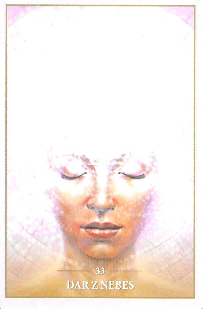 Dar z nebes. Nechejte si pomoci. Když k vám přichází nějaká forma daru, nebojte se ji přijmout. Může to být něco velmi konkrétního, co jste si vědomě přáli a nebo to může být něco nenápadného, ve formě, kterou nemusíte hned rozpoznat, protože jste si to nepřáli vědomě, ale srdcem. V každém případě, pokud to je nějaký předmět, který se vám líbí, tak vás nepřitahuje barva nebo vzhled, ale jeho energie, která s vámi něco dělá. A nebo to vůbec nemusí být věc, ale člověk, nějaký čin, událost nebo nějaká jemná energie, kterou rozpoznáte a pochopíte až časem. V každém případě si vždy dobře rozmyslete, co si přejete a počítejte s tím, že když si něco přejete, tak to přijde, jen to může být v jiné formě než si vy představujete.