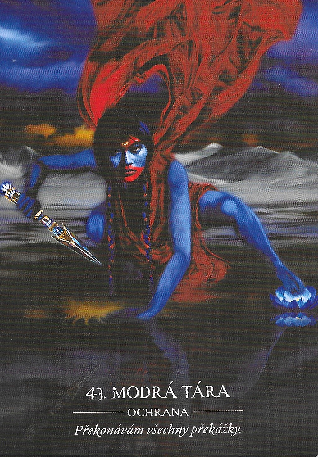 Bohyně Tára je v tibetském buddhismu hluboce uctívaná a má 21 podob, které odrážejí složitost a sílu posvátného ženství. Modrá Tára je její divoká, nespoutaná tvář – energie odvahy, osvobození a překonávání překážek.