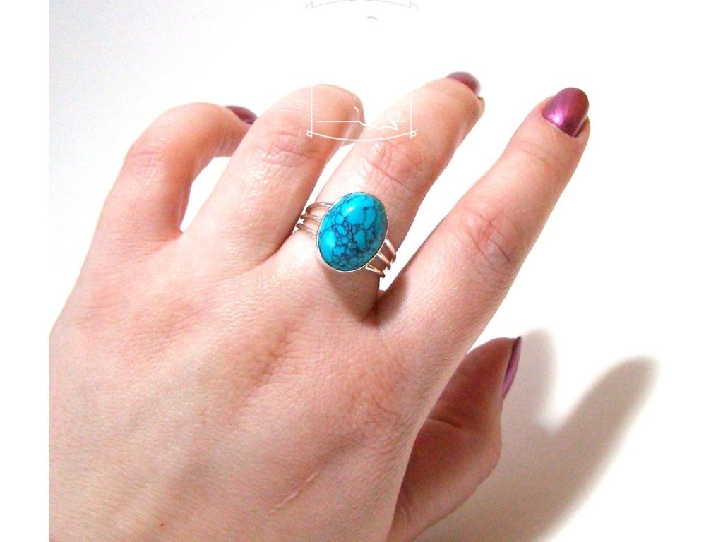 Tyrkys rekonstruovaný - stříbrný prsten ovál vel. 58