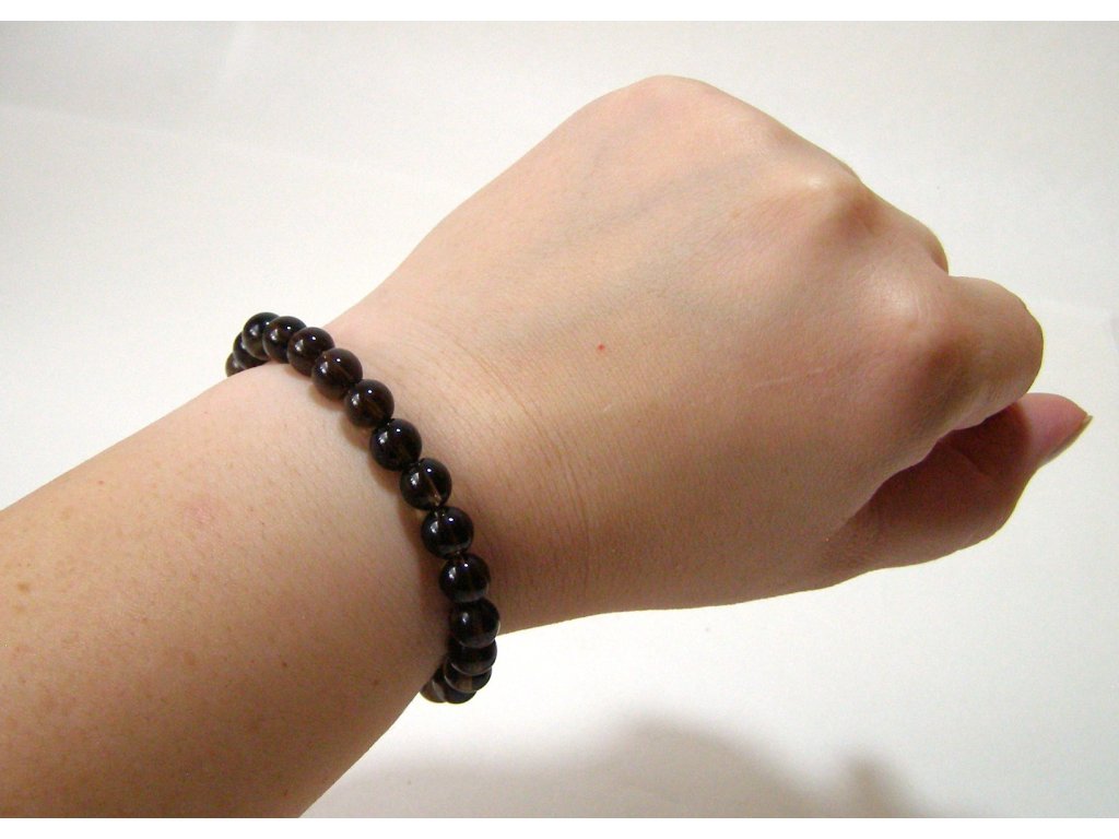 Náramek z hladkých kuliček záhnědy. Napínací, na gumičce. Jedná se o přírodní kameny, zabarvení jednotlivých kusů se může lehce lišit.